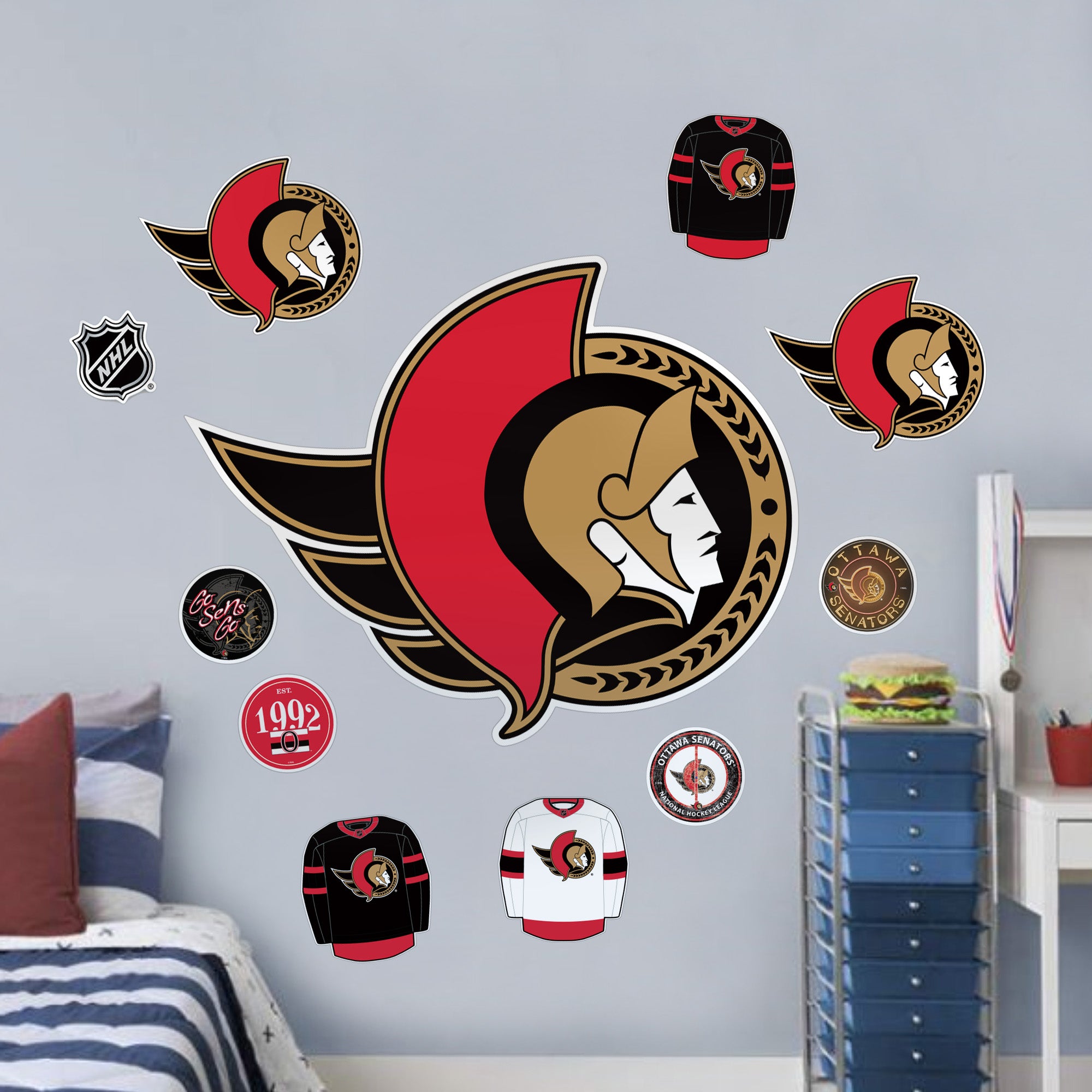 Ottawa Senators Repositionable Wall Decal Set - Team Logos