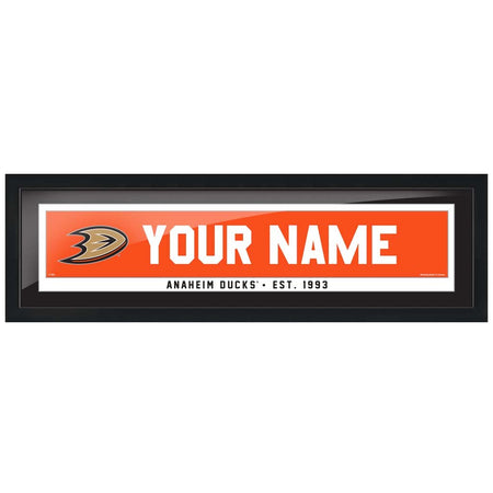The perfect addition to any hockey Fan Cave, Man Cave, office or bar. This personalized Anaheim Ducks wall art includes one of our officially licensed NHL graphics, printed and placed into our 6” x 22” framed art kits by our Canadian production team. This fine piece of wall-décor ships with a protective acrylic cover to minimize breakage and increase the lifespan of your product. All framed home décor comes with pre-mounted hanging hardware. Additional mounting hardware may be required.