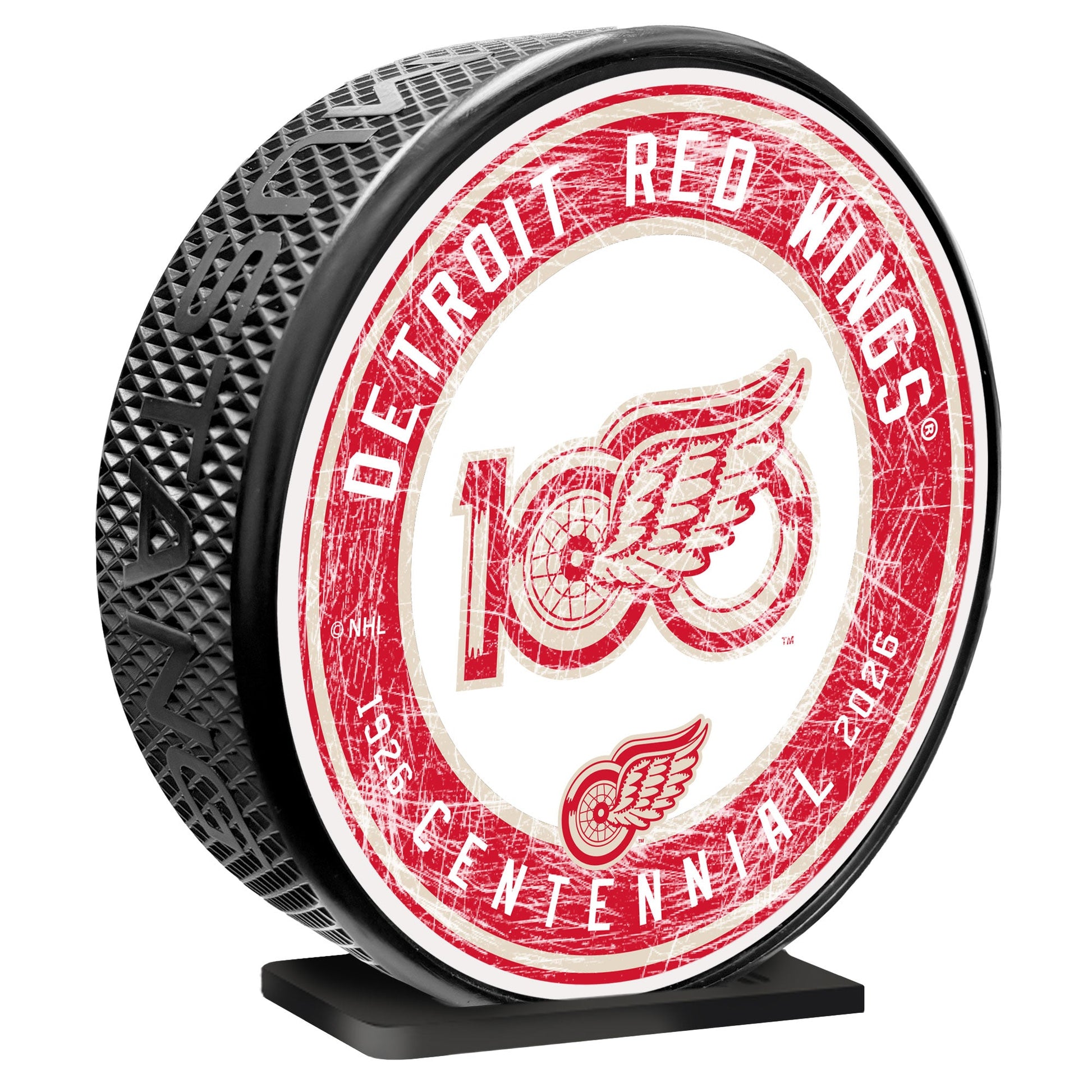 Mark the moment with this Detroit Red Wings 8" Centennial Mega Puck, a bold tribute to the game we love. Oversized and eye-catching, this collectible features the official centennial logo and a durable design perfect for display in your home, office, or fan cave. Whether you’re a lifelong supporter or a new fan of the sport’s legacy, this mega puck makes a statement worthy of 100 years of hockey greatness.