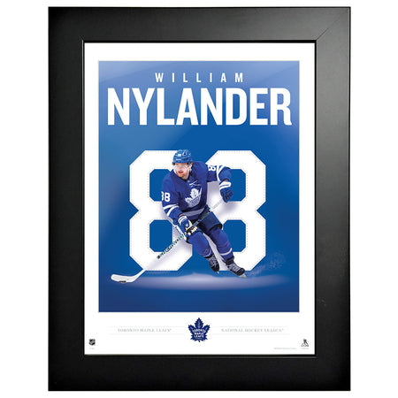 Show off your Toronto Maple Leafs pride with this sleek framed William Nylander player print. Featuring bold graphics of Nylander in action alongside his name and number 88, this officially licensed NHL collectible is the perfect addition to any fan cave, office, or game room. The vibrant Toronto blue background and crisp presentation make it a standout piece that highlights your favorite player.