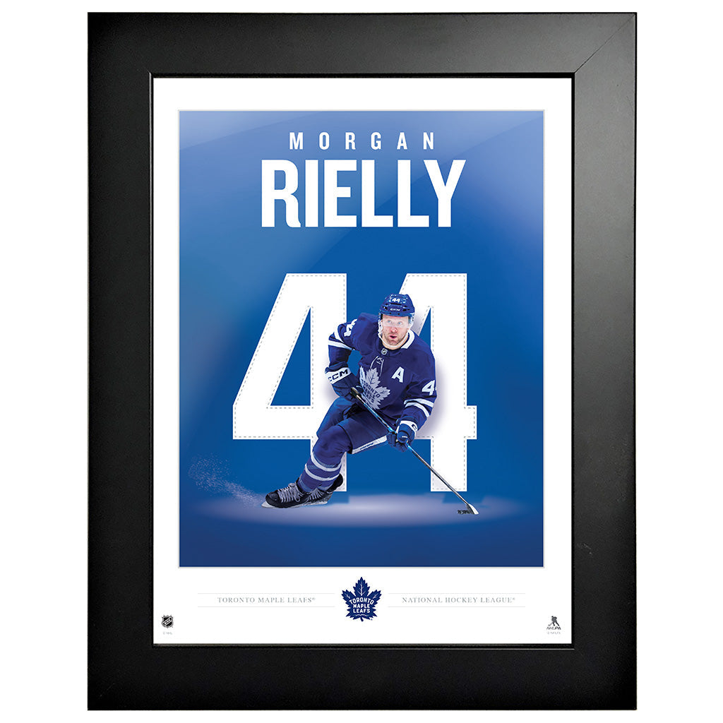 Show off your Toronto Maple Leafs pride with this sleek framed Morgan Rielly player print. Featuring bold graphics of Rielly in action alongside his name and number 44, this officially licensed NHL collectible is the perfect addition to any fan cave, office, or game room. The vibrant Toronto blue background and crisp presentation make it a standout piece that highlights your favorite defenseman.