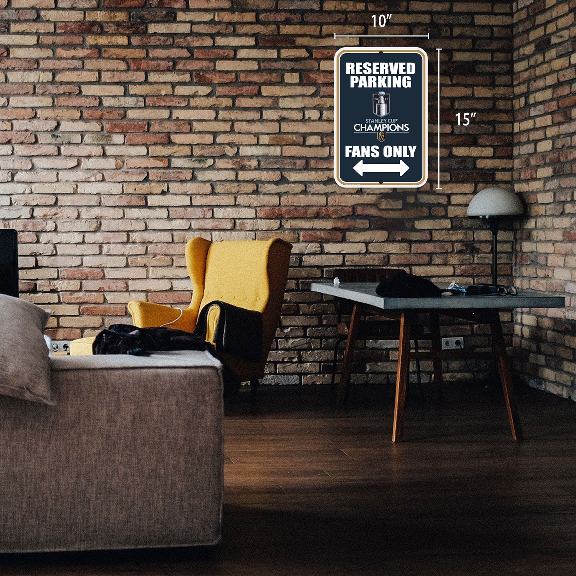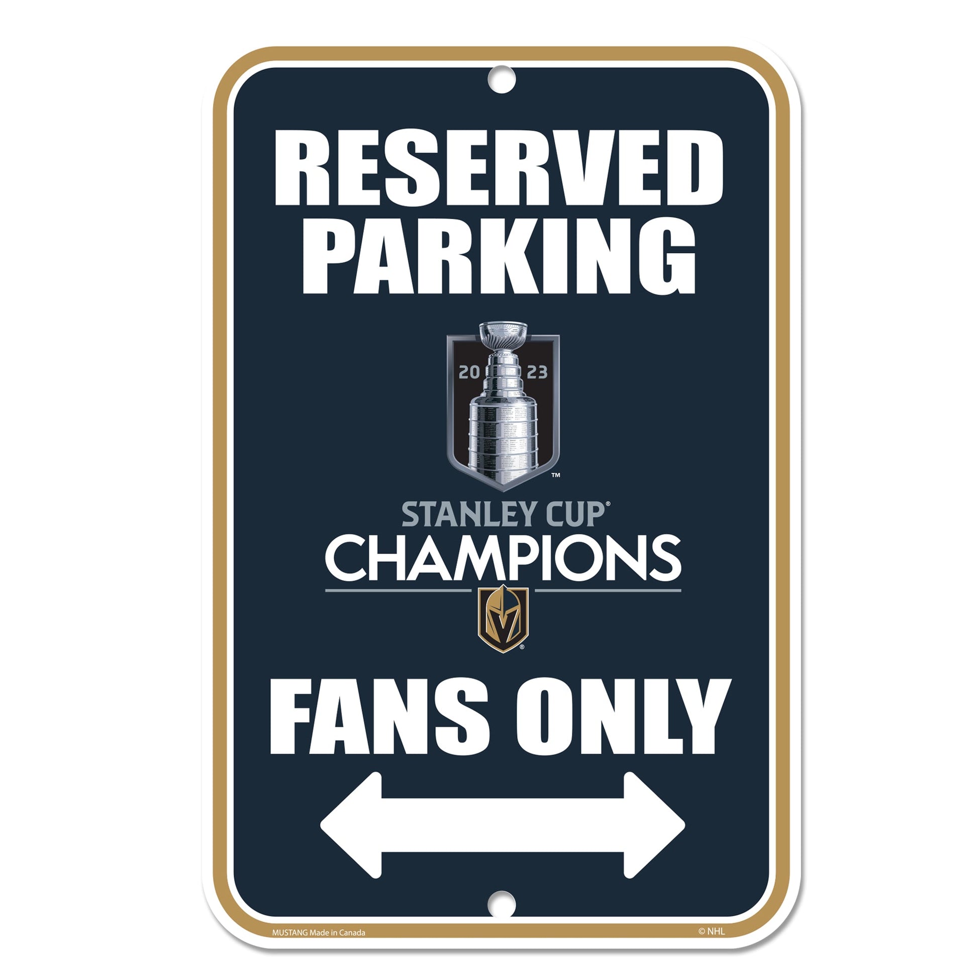 Show the world that the Vegas Golden Knights are Stanley Cup champions with this 10" x 15" parking sign! Whether you're looking to commemorate your favorite team's historic victory, or just show your support, this sign is an ideal way to prove your Golden Knights pride. Composed of a lightweight, yet durable styrene, this officially licensed sign is ready-to-hang with a pre-cut mounting hole. As a bonus, this sign can be hung with any 3M wall-hanging product. Additional mounting kits not included with purchase.